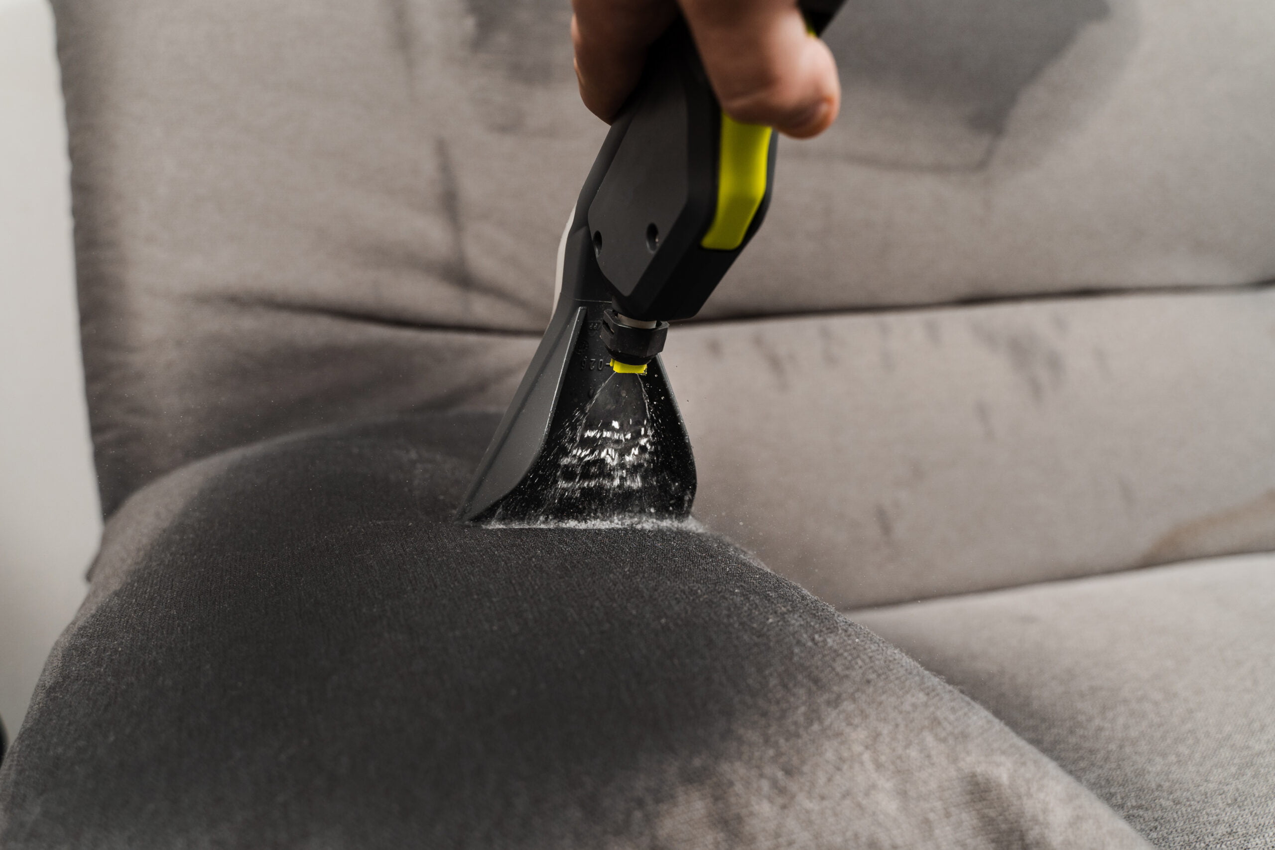 Extraction des impuretés au moyen d’une machine d’injection/extraction, comprenant le rinçage et la désinfection du canapé jusqu’à ce que l’eau extraite présente une clarté cristalline.